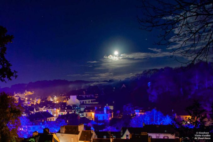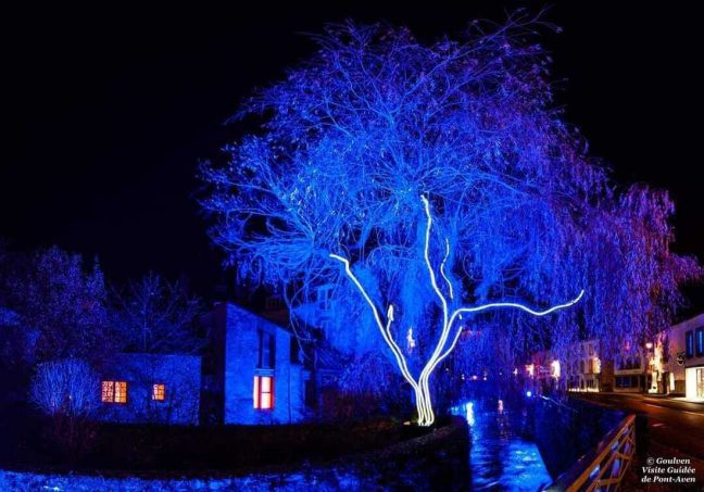 Les villes et villages bretons se parent de leurs plus beaux manteaux pour les fêtes de fin d’année. La commune de Pont-Aven met en place un parcours lumineux imaginé par l’artiste Jean-Pol Gloaguen. Devenant un véritable tableau vivant, les jeux de lumières personnifient le bourg. Les lavoirs, les arbres, les ponts prennent vie. Décidemment, la magie de noël n’a pas fini de réveiller les murs du village.