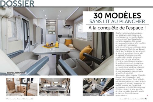 Les modèles de camping-cars sans lit au plancher sont tendance ! En effet, voilà plusieurs saisons que les nouveaux camping-cars sont dépourvus de couchages permanents. Ces modèles-ci de camping-cars sont compacts et ultraconfortables ! On vous en présente 30 dans un dossier spécial.
