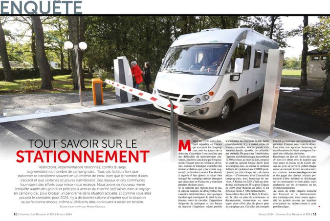 L’année 2024 tout juste amorcée, un nouveau numéro de Camping-Car Magazine vient trouver sa place chez les marchands de journaux. Le n°370 contient une enquête complète sur un sujet qui fait débat au sein de l’univers du camping-car : le stationnement.