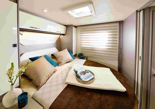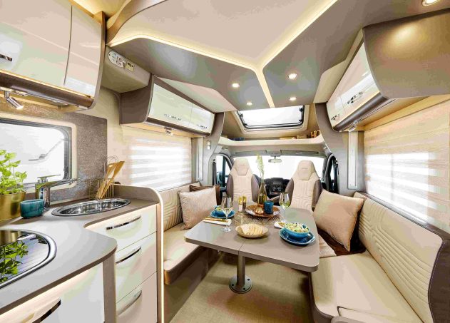 - Grand choix d’ambiances de décors bois et de tissus, avec en plus la possibilité de profiter de housses de banquettes brodées confectionnées dans les ateliers de couture Bürstner.