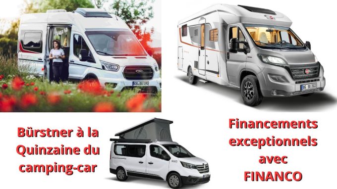 Du 9 au 23 mars 2024 se déroulera la Quinzaine du camping-car. Durant ces deux semaines l’UNIVDL (Syndicat des constructeurs de véhicules de loisirs) et une grande majorité de points de vente unissent leurs efforts pour proposer des offres exceptionnelles d’achat d’un camping-car neuf. La marque Bürstner qui s’associe à cette opération se distingue par une formule de financement particulièrement intéressante conçue en partenariat avec Financo.