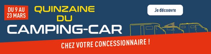 C'est LE bon moment pour se lancer dans un projet d'achat de camping-car. La "Quinzaine du camping-car" regroupe près de 400 concessionnaires participants à l'opération qui se déroule du 9 au 23 mars. De bonnes affaires sont à la clé ! Soyez prêts pour saisir des opportunités exclusives pour financer votre véhicule. Chez les concessionnaires qui participent à la "Quinzaine', vous aurez la possibilité de choisir sur place votre véhicule de loisirs, disponible immédiatement. Pour savoir quels sont les concessionnaires proches de chez vous qui participent à l'opération, CLIQUEZ-ICI.