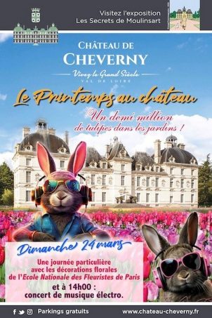 Le printemps pointe le bout de son nez à Cheverny. La fête annuelle consacrée à la belle saison s’empare du domaine de Cheverny, le 24 mars. Les amoureux de la nature et des plantes sont invités à venir y découvrir les nouvelles décorations florales élaborées par l’Ecole nationale des fleuristes. Cerise sur le cerisier, les Quatre Saisons de Vivaldi seront jouées en plein air devant tous les visiteurs. Entrée : 14,50 €/adulte. Début du concert à 14 h.