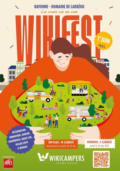 C’est à Bayonne, le samedi 1ᵉʳ juin 2024, que Wikicampers donne rendez-vous à "sa communauté", et plus largement aux adeptes et curieux de la vanlife, pour son traditionnel WikiFest. Cette année, la plateforme de location et de ventes entre particuliers organise son évènement au domaine de l'Arbéou, à Bayonne. La première édition avait eu lieu en 2016, sur les bords du lac de Guiche. Ce qui était d’abord un rendez-vous donné aux propriétaires ayant leur véhicule en location sur la plateforme collaborative, prend désormais un nouveau virage. Plus de 500 personnes sont attendues pour la 6ᵉ édition de l’événement historique de l’entreprise basque.