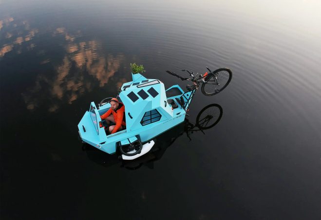 BeTriton est une entreprise basée en Lettonie qui crée un vélo camping-car amphibie. Ainsi, le voyage n’a plus de limite, car cette petite innovation permet de traverser des lacs comme des chaînes de montagnes, et ce, à la force des mollets. Mais cette création, baignée de folie, est le fruit d’un long cheminement…