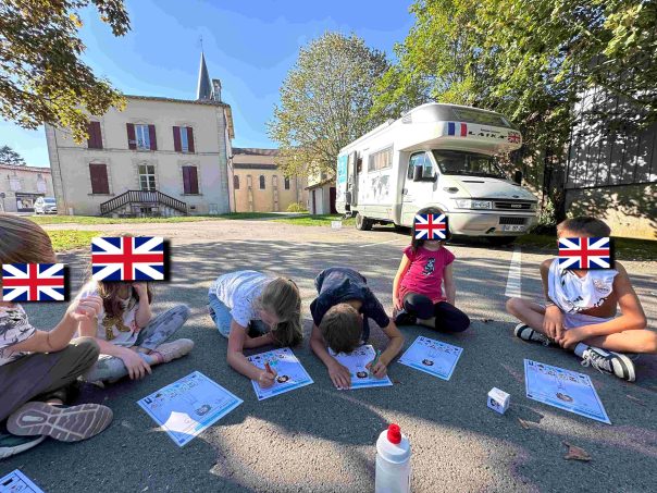 Fiona Rowlatt donne des cours d'anglais aux enfants à bord de son camping-car dans les Deux-Sèvres. Les leçons incluent des repas partagés, des jeux et des activités ludiques pour un apprentissage immersif de la langue.