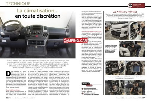 Pour autant, si vous avez peur de la chaleur, nous vous invitons à découvrir notre test EXCLUSIF sur l'inédit et innovant climatiseur Teleco Ultra Comfort 6000. Notre journaliste est allé assister au montage de cet équipement révolutionnaire qui se positionne, non pas sur le toit, mais en partie basse du tableau de bord d'un Fiat Ducato ou équivalent de chez Stellantis, au niveau du porte-bouteille. C'est une petite révolution dans l'univers du camping-car puisque cette clim' ne demande aucun perçage ni modification sur le véhicule.