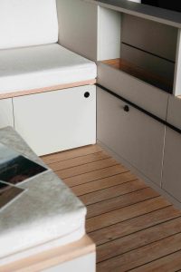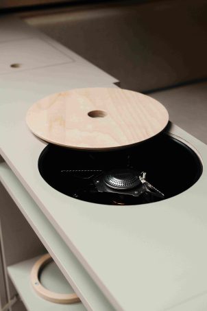 La particularité de l’aménageur siège donc dans le mariage entre la menuiserie et l’architecture. « Nous réalisons beaucoup de dessins, pensons à l’ergonomie, au fait que l’aménagement soit fonctionnel… Ces éléments permettent que le tout soit minimaliste, ce qui va donner une sensation d’espace, même dans un petit volume », définit-il.