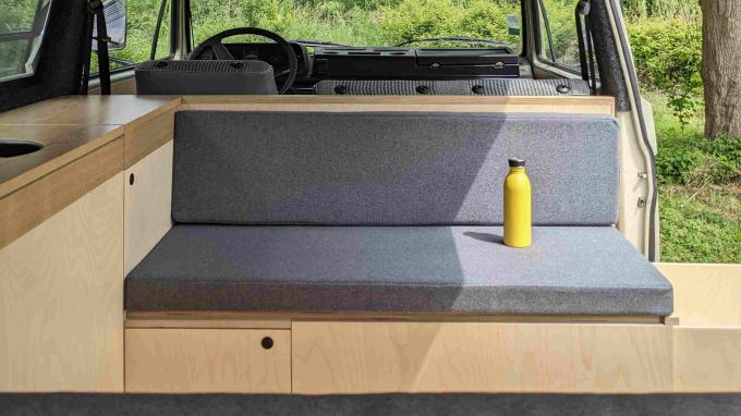 « Le coût moyen de nos services est autour de 20 000 €. Cela comprend l’installation, les accessoires, l’isolation et les meubles. Le minimum, souvent pour l’Adventure kit, est de 5 000 € et on peut aller jusqu’à 45 000 €. C’est ce que nous réalisons actuellement sur un T6 à quatre roues motrices. Nous y intégrons un toit relevable, des meubles stratifiés ultra mats et anti-rayures en peuplier, une sol en chêne massif, de l’isolation, un habillage en feutrine sur les parties de carrosserie visibles, un habillage en boulot, un chauffage, un chauffe-eau, un réservoir de 70 litres, un filtre à charbon », énumère-t-il.