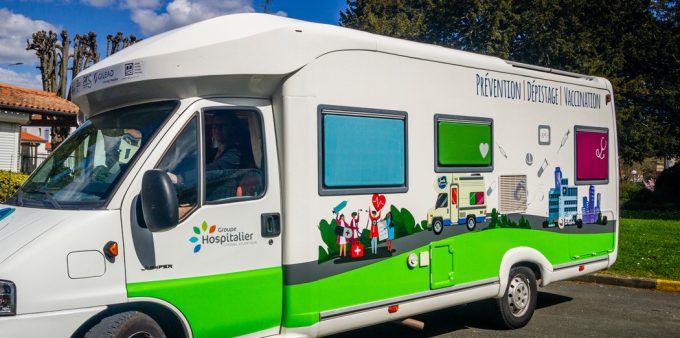 Sur un porteur Citroën Jumper, le profilé est aménagé en conséquence. Les deux collègues font ainsi de la prévention, des dépistages et de la vaccination. Ainsi, le camping-car permet d’aller au plus près des personnes qui sont éloignées de l’accès aux soins, en particulier à cause de la ruralité et de la précarité.