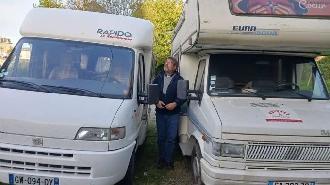 Sa capucine, elle est embarquée par un porteur Fiat des années 1990. Certes, ce n’est pas un modèle flambant neuf, mais pourtant, c’est déjà le deuxième camping-car de l’ecclésiastique. Son véhicule, il l’appelle le « camping-cœur », car il a pour but de rapprocher les gens. D’ailleurs, il lui a été offert par ses précédents paroissiens alors qu’il était dans le Loiret.