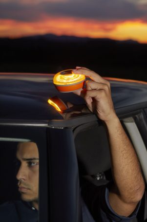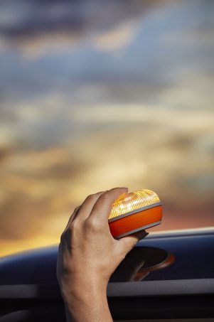 Tout conducteur devra donc avoir à portée de main, c'est à dire dans la boîte à gants ou dans un placard de pavillon, une balise V-16 en état de fonctionnement (batterie chargée) afin de pouvoir s'en saisir et l'installer sur son véhicule sans être obligé d'en sortir.