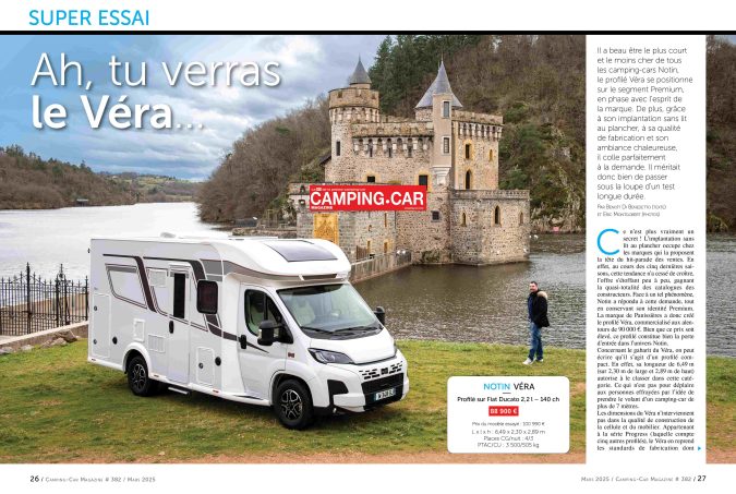 Côté véhicule, nous nous sommes installés au volant du profilé compact Notin Véra. Il est le moins cher des camping-cars de la marque française et se positionne malgré tout sur un segment Premium. Commercialisé à partir de 88 900 €, notre journaliste Benoît Di Benedetto le passe à la loupe.