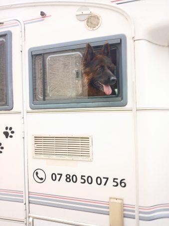 Côté véhicule, il trouve en 2023 un camping-car d’occasion Rapido sur base Ducato de 2000 déjà aménagé pour une profession de toiletteur itinérant. Il est pourvu d’un réservoir d’eau claire de 200 litres, d’une chauffe-eau de 100 l, d’un réservoir d’eau grise de 100 l, d’une baignoire et d’une table électrique. « Je l’ai payé 17 000 euros et il n’avait que 70 000 km. J’ai fait quelques modifications au niveau du partage des espaces et des lumières à bord », complète l’entrepreneur basé à Montluçon, qui couvre un secteur d’une trentaine de kilomètres de rayon.
