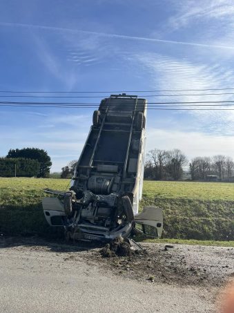 Cet accident spectaculaire s est produit cet après midi sur la commune de Saint-Meloir-des-Ondes.