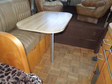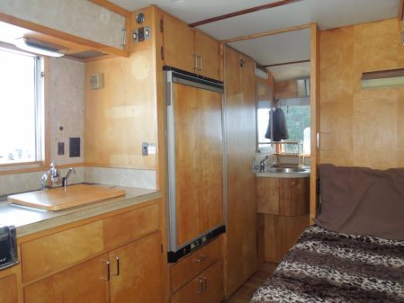 À l’intérieur, c’est le confort qui prime avec une cuisine composée d'un évier, d’un lave-vaisselle et un réchaud trois feux. L’intérieur est vintage et l’implantation originale avec des fauteuils en cuir et un volant en bois. Le camping-car est actuellement à vendre sur Facebook Marketplace à 20 000 dollars.