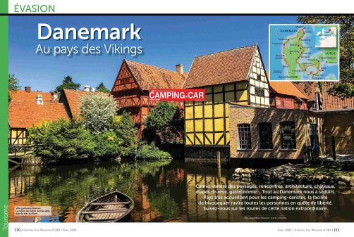Ce magazine vous emmènera aussi en voyage hors des frontières tricolores à la rencontre des Vikings. Nous vous donnons rendez-vous au Danemark entre châteaux, gastronomie, paysages sauvages… Le pays est réputé pour son accueil camping-caristes.