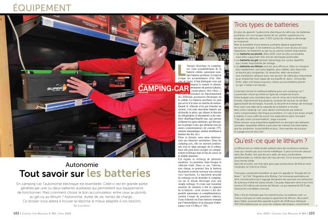 L’autonomie en véhicule de loisir dépend en partie des batteries à bord. Cette autonomie électrique dans la cellule est basée sur la ou les batteries auxiliaires. À travers plusieurs pages, nous vous aidons à choisir un accumulateur en fonction de sa technologie, de son autonomie, de sa durée de vie, du temps de charge…
