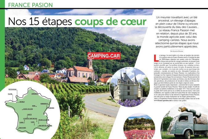 Depuis 30 ans, France Passion met en relation le monde agricole avec celui des camping-caristes. Ainsi, les touristes peuvent découvrir un meunier travaillant avec un blé ancestral, un élevage d'alpagas dans l'Aisne ou une fabrique de bleu des Causses. Dans ce dossier, nous avons sélectionné 15 étapes coup de cœur.