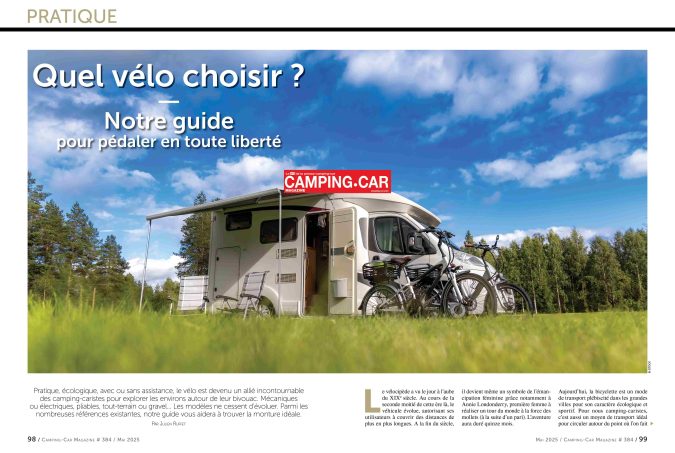 En ce début du mois d’avril, le numéro 384 de Camping-Car Magazine a été livré en kiosque et dans les boîtes aux lettres des abonnés. On y retrouve un super essai, des évasions en Corrèze et en Laponie, un guide sur la mobilité à vélo et surtout notre classement des 100 plus belles aires au bord de l’eau.