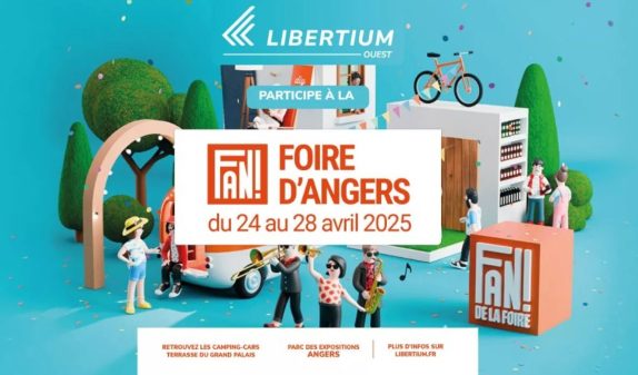Du 24 au 28 avril 2025, de 10h à 19h, Libertium Ouest participe à la 101e édition de la foire d’Angers, un événement incontournable pour les amateurs et les professionnels de camping-cars, fourgons aménagés, vans et caravanes. Sur place, les visiteurs pourront obtenir des conseils personnalisés et des offres exceptionnelles sur les accessoires et le financement. L’évènement se déroulera au Parc des expositions d’Angers de 10 h à 19 h.