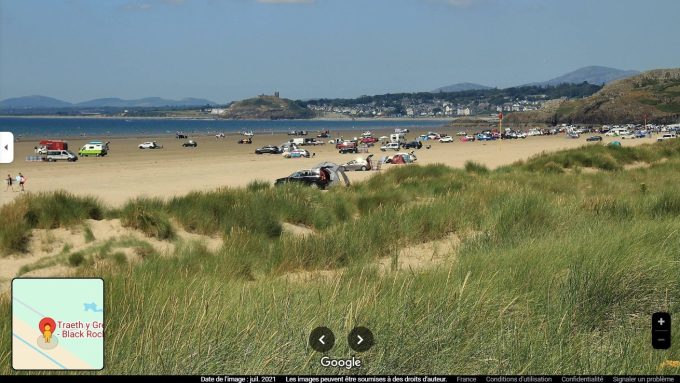 Cette très longue plage, située dans le comté de Porthmadog, au nord-ouest du Pays de Galle (52.907475, -4.176819), est connue de tous les Britanniques pour la simple raison qu’il est possible d’y stationner avec son véhicule du 1er avril au 30 septembre.