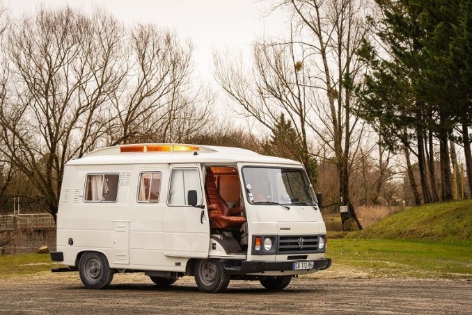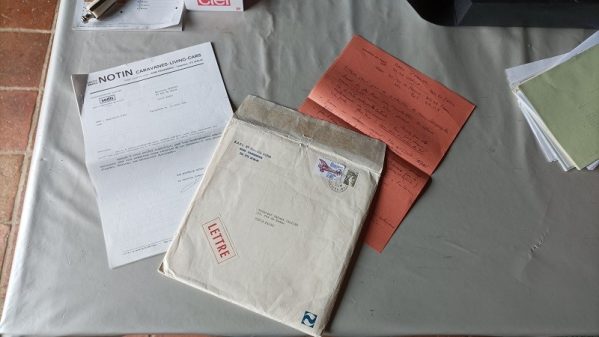 Sur deux feuilles de papier rose, à en-tête de l’Académie de Paris, manuscrites recto-verso, on peut lire les “quelques vœux pour la réalisation de mon camping-car” formulés en 1981 par un certain M. Verrier, qui accompagnaient des plans réalisés par ce dernier : “Pas de porte latérale coulissante (…) trouvez pour cet emplacement un agencement (bar, porte-chaussures, vide-poche… glace miroir) sans gêner l’ouverture du lit. Soignez particulièrement – les bruits – calfeutrage thermique et phonique Prévoir une couchette – sur toile matelassée, tubes télescopiques et goussets en ferrures…” Dans la même enveloppe, tous les papiers fournis par Notin et nécessaires à l’immatriculation du J9 sont également présents. Un compte-rendu en règle qui permet de reconstituer l’historique de ce fourgon. Mis en circulation sous sa forme définitive le 16 juin 1981, il restera dans la même famille jusqu’en 2018, date à laquelle un couple beauvaisien s’en porte acquéreur. Ayant finalement besoin de quatre couchages, ils ne le conserveront que peu de temps. Annie et John en deviennent les nouveaux propriétaires en août de cette même année. Ces amateurs de caravaning rétro cherchaient un fourgon aménagé vintage pour leurs escapades, régulières dès le retour de la belle saison. Alors, lorsqu’ils sont tombés sur l’annonce de ce Peugeot J9, ils n’ont pas hésité longtemps. Il faut bien dire que, outre la rareté de l’engin et son état de préservation exceptionnel, le charme quelque peu suranné de son aménagement ne peut laisser indifférent.