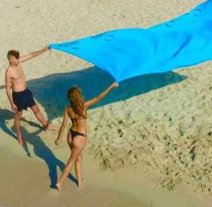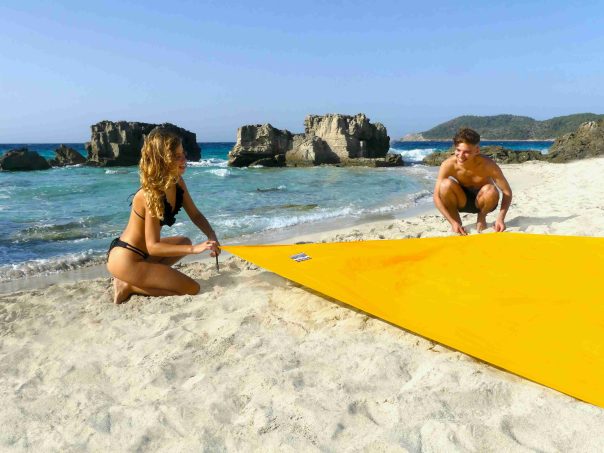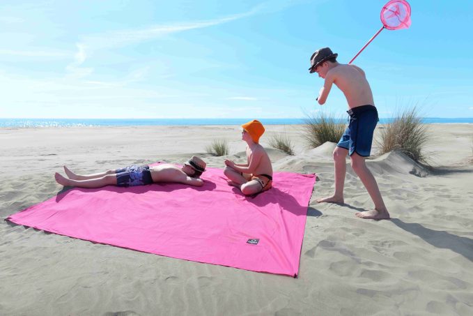 Si cette nouveauté n’est pas vraiment une révolution, elle a le mérite d’être pratique et fabriquée en France. En s’inspirant des tapis de sol de tente au camping, ce drap de plage est disponible en quatre formats. Un très grand pour les groupes, un autre pour les familles, puis pour les couples et enfin un format individuel.