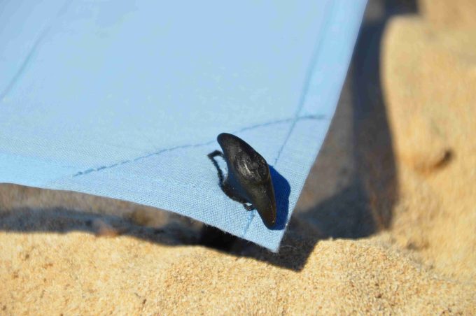 Les vacances en camping-car riment souvent avec séjour à la plage, le temps d’une baignade, d’une sieste ensoleillée ou d’une balade bucolique. Pour en profiter au maximum, la marque Obaba a créé un drap de place qui ne s’envole pas grâce à quatre piquets. Ceux-ci se disposent directement dans des boutonnières renforcées, situées aux quatre coins.
