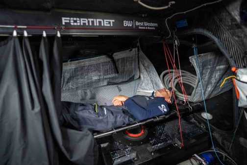 Nous le contactons par téléphone. L’homme semble paisible, reposé. Pourtant, il n’y a que quelques semaines qu’il est revenu de “l’Everest des mers” pendant lequel il a passé 83 jours au large : “Cette course, ce sont nos Jeux olympiques à nous. Elle a lieu tous les quatre ans.” À peine le pied à terre, le marin a déjà la tête au prochain Vendée Globe : “Dès le retour, même si on est fatigué, il faut signer des contrats de sponsoring pour les quatre années à venir. En parallèle, il y a la tournée des médias.” Il fait donc une croix sur les congés et se concentre, avec son équipe de huit personnes, sur les deux millions d’euros de budget annuel à trouver, dont une partie est investie dans le bateau qui passe quatre mois par an au chantier : “Car le plus difficile dans ce sport, c’est d’être prêt pour prendre le départ des régates”, explique-t-il.