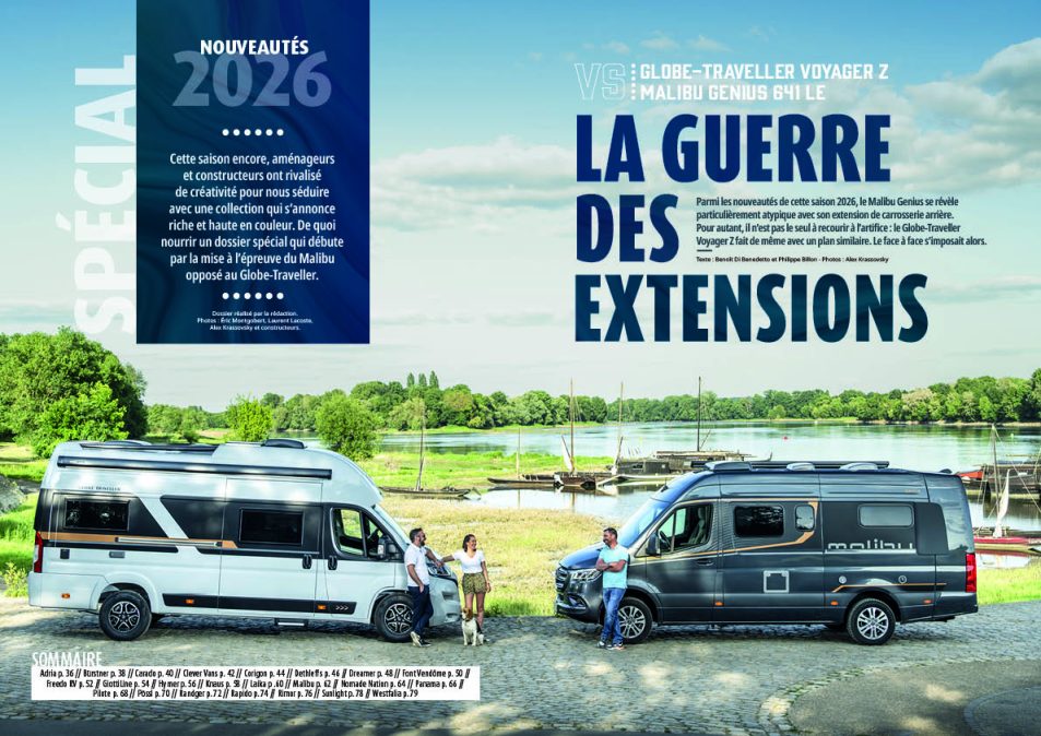 Un dossier incluant un face-à-face inédit et exclusif entre le tout nouveau Malibu Genius et le Globe-Traveller Voyager Z, deux fourgons atypiques avec leurs extensions de carrosserie arrière.