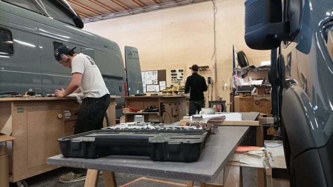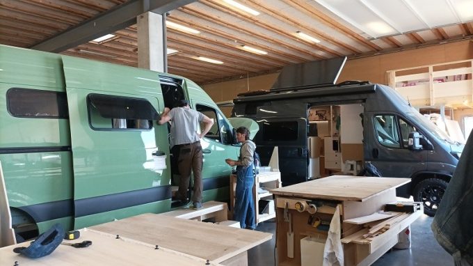 L’atelier fourmille de compagnons enthousiastes qui fabriquent de beaux véhicules sous la houlette d’une direction passionnée. Florent et Rémi, les fondateurs, sont des baroudeurs partis en van aux quatre coins du monde, chacun de leur côté.