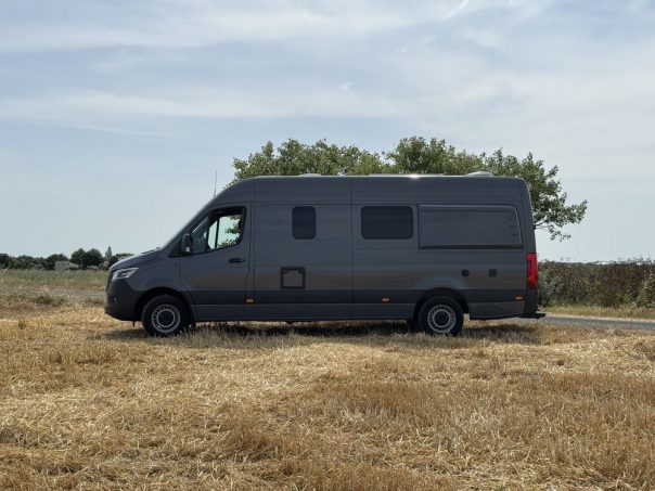 L’an passé, Almo nous avait gratifié d’une jolie réalisation sur MAN TGE avec transmission intégrale. Cette année, l’aménageur rochelais surprend en s’attaquant au Mercedes Sprinter en version la plus longue, à savoir 6,97 m. Selon les dires des responsables, il a fallu près de 500 heures pour venir à bout de ce projet répondant à une demande spécifique pour un usage à deux. Almo reste spécialisé dans le sur-mesure avec une conception alliant contreplaqué allégé avec un mélange de stratifié, plaquage frêne et bambou massif.