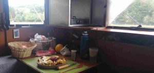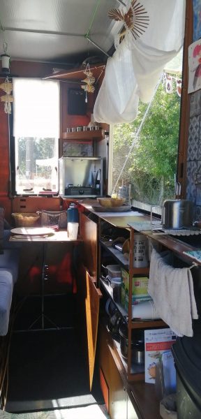 Après plusieurs années de voyage, Gaylord se dit pleinement satisfait du confort de sa Rosalotte. Elle comprend un évier, un garde-manger, un plan de travail, une grande fenêtre, un réchaud-four, un étendoir à linge, un chauffage Truma, une table, un canapé-lit deux places, des toilettes sèches à séparation d’urine, une douche, des lampes, un panneau solaire et une batterie. L’ensemble est autonome et limite l’impact environnemental.