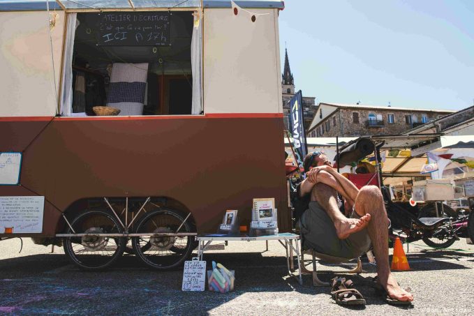 Vivant à l’année dans la Rosalotte, Gaylord finance son mode de vie grâce à des ateliers d’écriture et des conférences dans des écoles et des EHPAD, ainsi que par la vente d’un e-book retraçant son projet. « Ce mode d’itinérance me place dans un autre rapport au temps. Une assistance électrique me permettrait toutefois de multiplier les interventions et de rendre le modèle plus viable économiquement », confie-t-il.