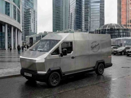 Alors que Tesla a officiellement annoncé l’arrêt de la production de certains de ses modèles, la sortie d’un fourgon n’est pas au goût du jour. Pourtant, le Russo Balt F200 semble librement s’inspirer du Cybertruck. Il est lui aussi électrique, avec ses roues noires et une carrosserie anguleuse en acier inoxydable. Le constructeur russe propose d’ailleurs 100 ans de garantie pour cette carrosserie.