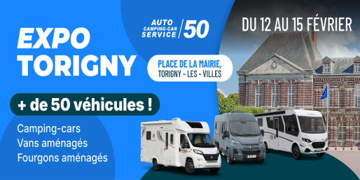 Du 12 au 15 février, retrouvez l’exposition-vente de Torigny avec l’équipe d'Auto-Camping-Car Service 50. Le public pourra y découvrir 50 véhicules exposés, avec des camping-cars, des vans et des fourgons. Comme souvent dans les expositions-ventes, des véhicules neufs et d’occasion seront commercialisés. Un jeu concours avec des cartes cadeaux à gagner sera organisé sur place.