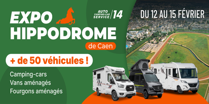 Du 12 au 15 février, l'Exposition-vente s’invite à l’Hippodrome de Caen avec l’équipe Auto Camping-car Service 14. Une cinquantaine de véhicules de loisirs neufs et d’occasion seront exposés. Les portes seront ouvertes chaque jour de 10 h à 19 h. Un jeu concours se tiendra durant l’évènements, avec des cartes-cadeaux à la clé.