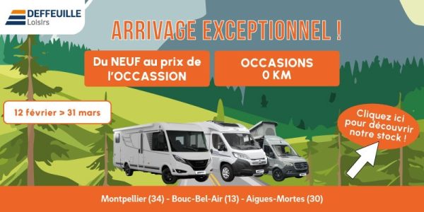 Rendez-vous chez Deffeuille Loisirs pour un arrivage du 12 février au 31 mars 2026. Les trois concessions Deffeuille Loisirs proposeront ainsi des véhicules neufs et d’occasion. On retrouvera notamment des camping-cars Hymer, Laika et Eriba à des prix compétitifs. Notons que le stock sera limité.