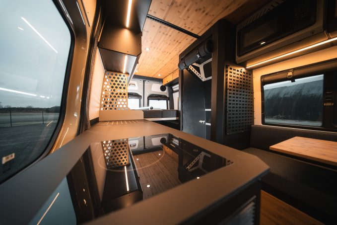 « Les fourgons et les véhicules de loisirs en général n’offrent pas énormément d’espace à l’intérieur, alors ces composants permettent d’obtenir une bonne respirabilité », affirme l’aménageur. Une approche cohérente avec des aménagements minimalistes qui s’inspirent davantage de la vanlife que du camping-car traditionnel.