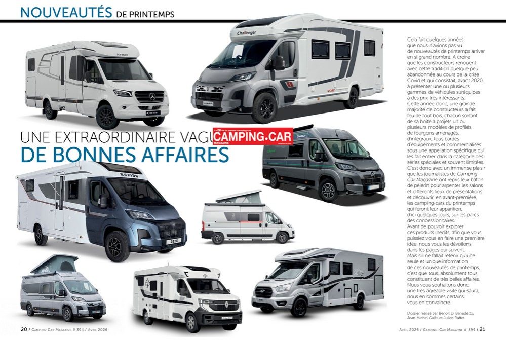 Votre nouveau numéro de Camping-Car Magazine arrive en kiosque dès aujourd'hui. Un numéro printanier qui va de paire avec l'arrivée des beaux jours et qui vous propose dans ce n°394 un sommaire une fois de plus riche et variée comme vous allez pouvoir vous en rendre compte.