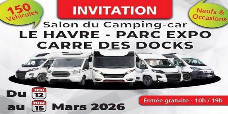 Au Carré des Docks du Havre, le Salon du camping-car du Havre se tient du 12 au 15 mars 2026. Pendant quatre jours, les visiteurs pourront parcourir les allées pour découvrir de nombreux modèles et comparer les dernières nouveautés du secteur.