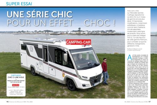 À l'opposé du marché, nous avons aussi passé au crible le segment Premium avec le super test du Carthago chic C-Line I4.9 LE. Un intégral séduisant que nous avons mis à rude épreuve sur les routes du Finistère, en Bretagne. Vous pourrez d'ailleurs retrouver cet essai en vidéo dès samedi 4 avril 2026 sur notre chaîne YouTube.