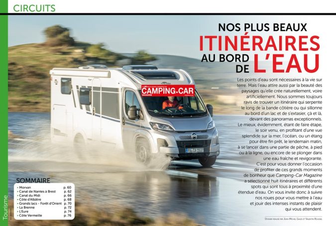 Ce mois-ci, la rédaction de Camping-Car Magazine vous gâte une fois encore. L'arrivée du printemps donne des envies d'évasion et nous avons choisi de consacrer notre dossier phare pour ce numéro 395 à des circuits dont les routes ou les étapes suivent les bords de l'eau. Nous avons sillonné la France pour vous proposer 8 itinéraires en camping-car pour pouvoir profiter d'étapes maritimes ou fluviales. Que vous cherchiez la fraîcheur des rivières, le calme d'un lac ou le grand air de la méditerranée et Atlantique, nous vous livrons nos meilleures adresses d'aires de services et de parkings autorisés ainsi que des idées de balades.
