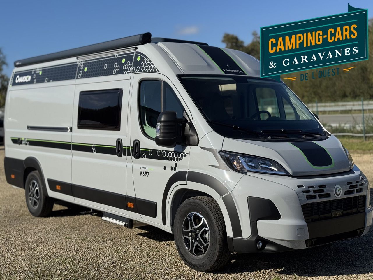 Avec le V697, Chausson réussit le difficile pari d’implanter 2 lits jumeaux de belles dimensions dans un van de seulement 6.36 mètres. Vous aimerez ses astuces de rangements comme son double plancher sous lit pour stocker table et chaises de camping. Idéal pour un couple qui souhaite voyager partout, en toute discrétion.