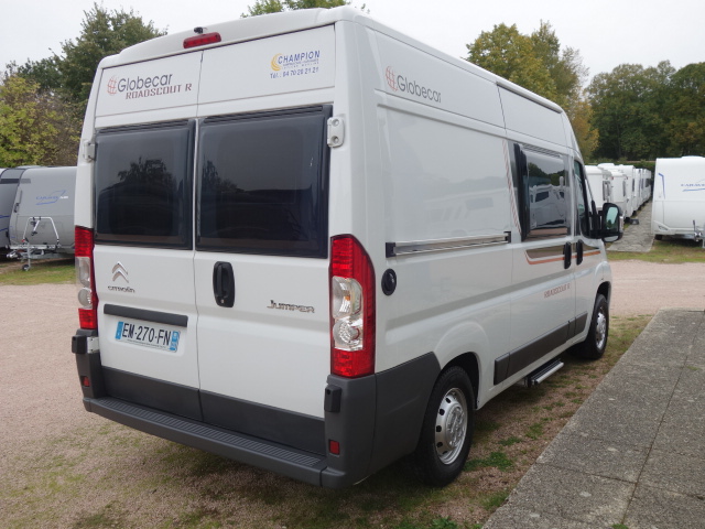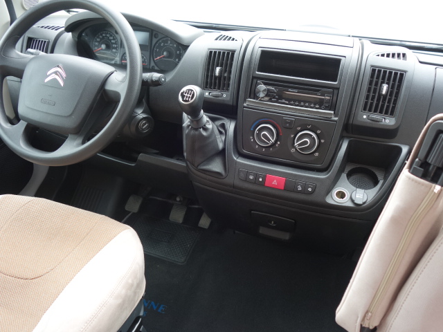 Fourgon prêt à partir, grand lit arrière transversal, cabinet de toilette avec WC et douche centrale, équipements: panneau solaire, antenne TV htz, TV, auto radio, caméra de recul, roue de secours, stores plissés cabine.