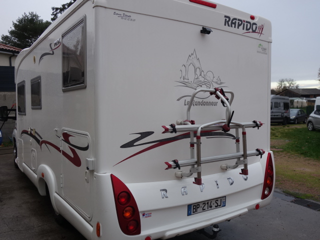 Profilé avec lit arrière transversal sur garage, cabinet de toilette avec WC et douche séparée, dinette convertible, équipements: store, panneau solaire, antenne TV htz, TV, auto radio, caméra de recul, porte vélos, attelage, 3 serrues de sécurité.