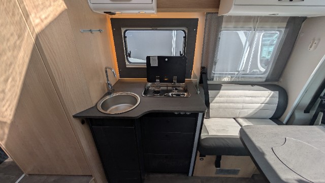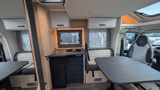 Citroen 2.2 l 140 CV-BVA, diesel, Ambiance intérieure Adventure - Alcantara, Baie à cadre, Caillebotis dans la douche, Grand réfrigérateur 155L dont freezer séparé 29L, Lanterneau panoramique de cabine, Lit Pavillon avec éléments Clima-Plux, Modification de la dinette en couchage, Pack jantes aluminium bi-ton Citroen, Pack soleil, Panneau solaire 100 Watt avec régulateur MPPT, Portillon de service coté gauche, Support écran plat + pré-cablage 12V
