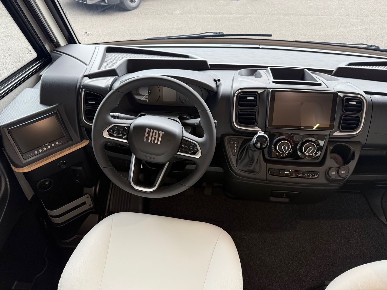 Le G740FC offre des espaces de vie harmonieux et une très belle circulation dans tout le véhicule. Son grand lit central de 150 cm de largeur, sa salle de bains à double cloisonnement et son salon face-face pour 5 convives font de cet intégral une valeur sûre.