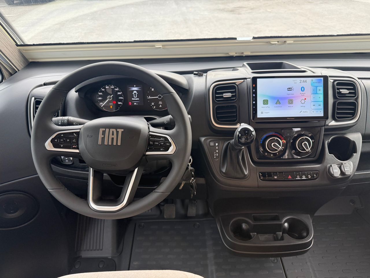 Pack Série 800 Nevis Fiat (Feux antibrouillard ; Skid Plate noir ; Jantes en alliage 16 » bicoloers ; Volant et pommeau de vitesse en cuir ; Tableau de bord Techno ; Frein à main électrique ; TPMS (capteur de contrôle de la pression des pneus) ; Porte XL à 2 points avec fenêtre et fermeture centralisée ; Support TV 32 » ; Panneau solaire 200 W avec régulateur MPPT ; Store plissé cabine)